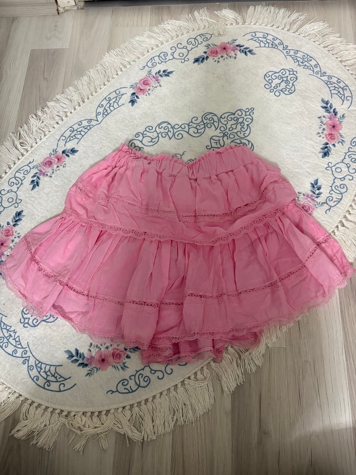 Pembe Fırfırlı Mini Etek