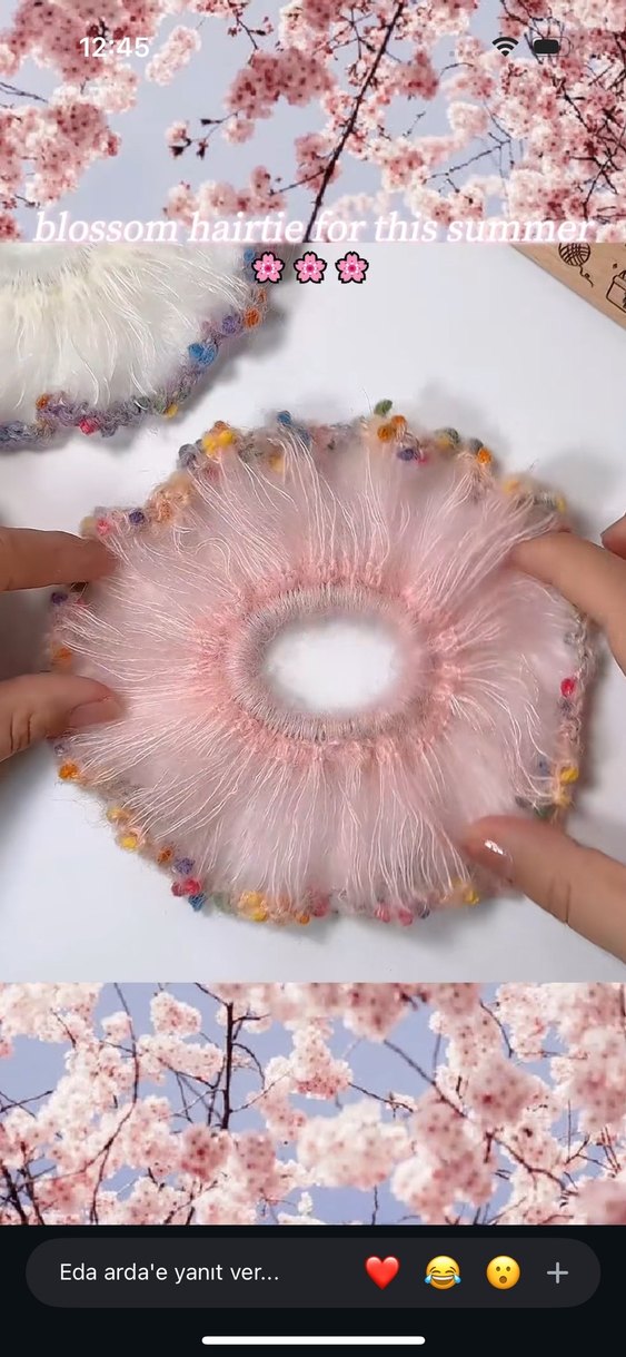 Renkli detaylara sahip pembe örgü saç tokası, fırfırlı tasarımıyla bohem tarzı tamamlar. İstenilen renge göre örülür Kına hediyeliği için sipariş alınır