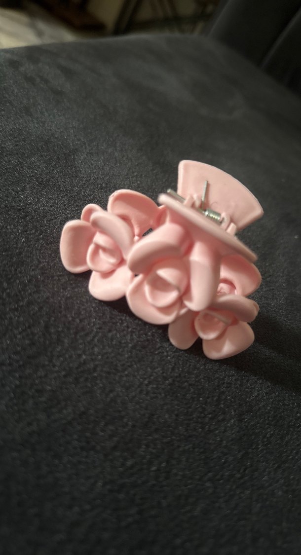 Pastel pembe renkte, plastikten yapılmış ve fırfır detaylı saç tokası, modaya uygun ve avant-garde tarz için ideal.