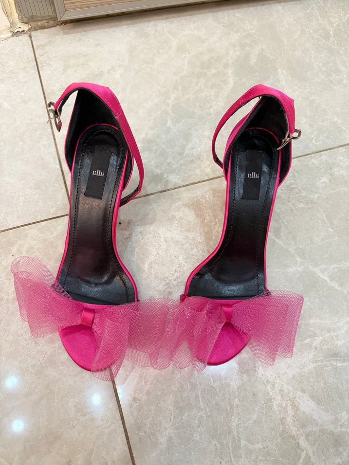 Pembe Fırfırlı Stiletto Topuklu Kadın Ayakkabı