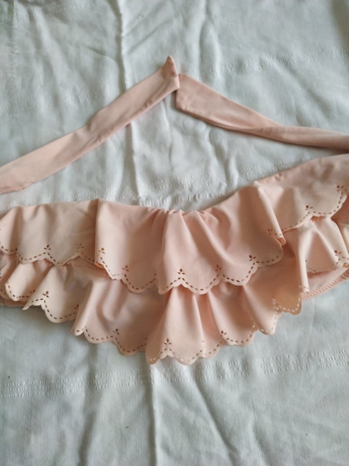 Bu pembe fırfırlı kız bolero, straplez yakalı ve askılı kolludur. Nakış detaylı, soft sentetik kumaştan yapılmış, bohem tarzda ve vücuda oturan kesime sahiptir. bikini üst içi balenli penye astarlı