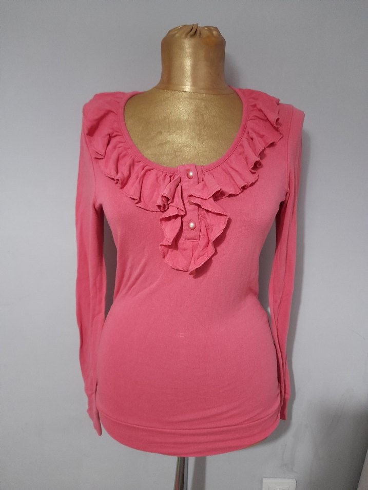Pembe Fırfırlı Uzun Kollu Kadın Bluz