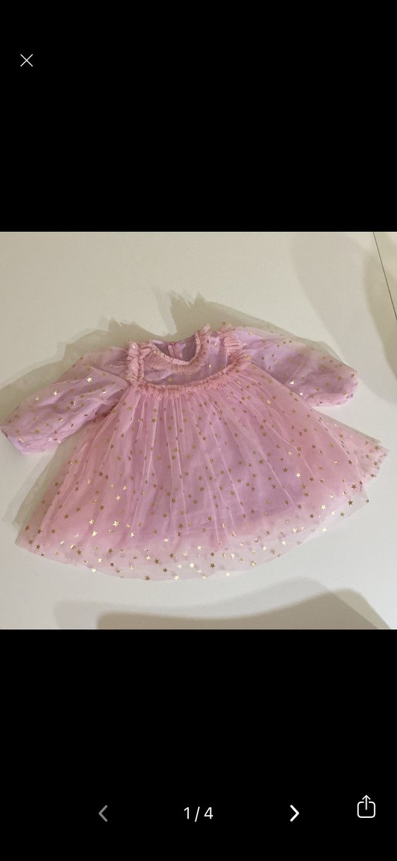 Pembe Fırfırlı Uzun Kollu Kız Elbisesi