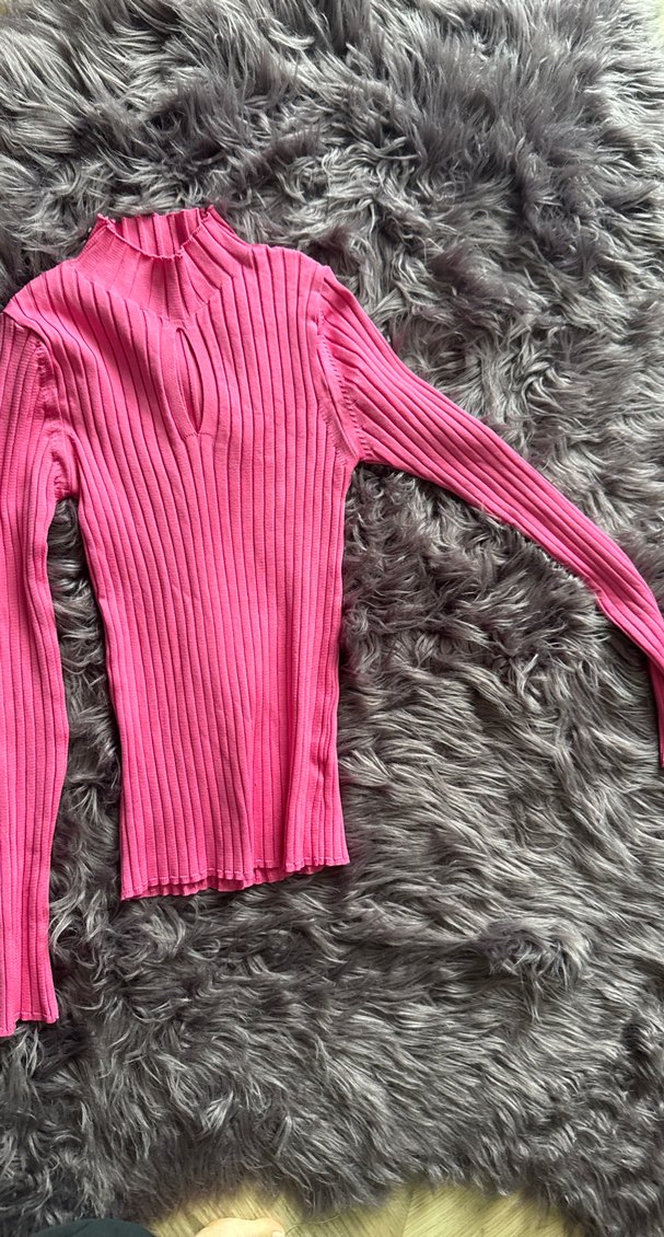 Kadınlar için pembe renkte, uzun kollu, fit kesim, yarım balıkçı yaka ve örme dokuda rahat kazak. Günlük kullanıma uygun normcore tarzda.