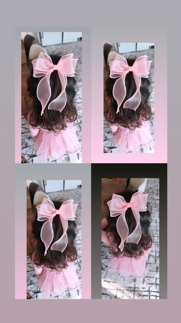 Pastel pembe renkli, fiyonk desenli çocuk saç tokası, modaya uygun ve gotik tarzı yansıtır.