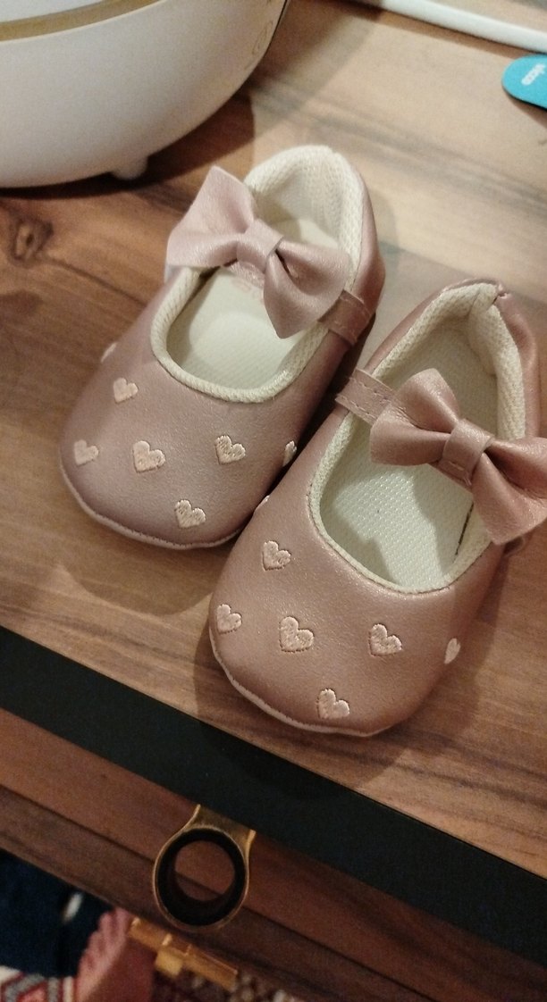 Pembe renkli, lastik malzemeden yapılmış kız çocuk babet ayakkabılar. Fiyonk detayı ve pastel tonları ile sade ve klasik tarzda.