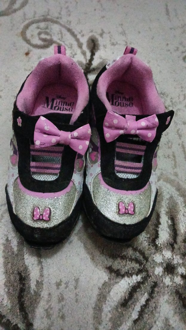 Pembe fiyonk detaylı, kauçuk tabanlı kız çocuk spor ayakkabısı. Renkli, goth tarzında ve desen içermeyen Minnie Mouse temalı model.