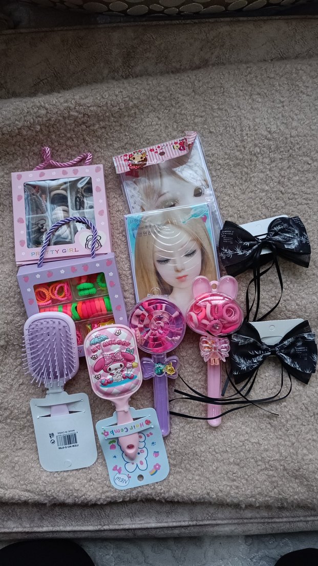 Pembe fiyonk ve baskılı detaylara sahip çocuk saç aksesuarları, trend ve avangart tarzı ile dikkat çekiyor.