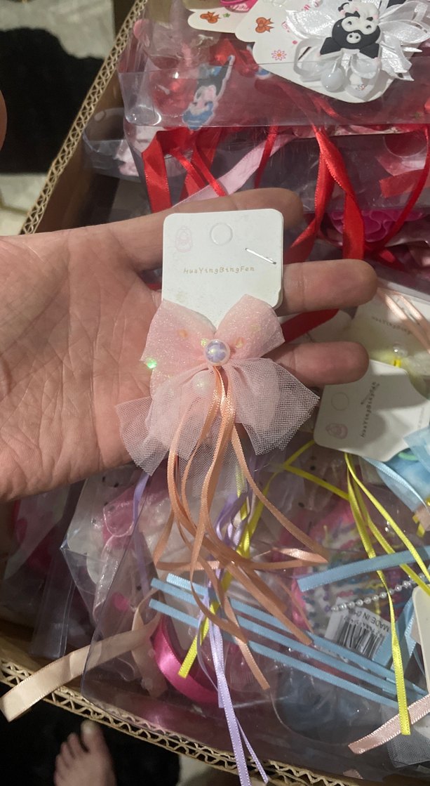 Pastel pembe renkte, fiyonk detaylı, bohem tarzda desenli çocuk saç tokası, şık ve özgün bir görünüm sağlar.