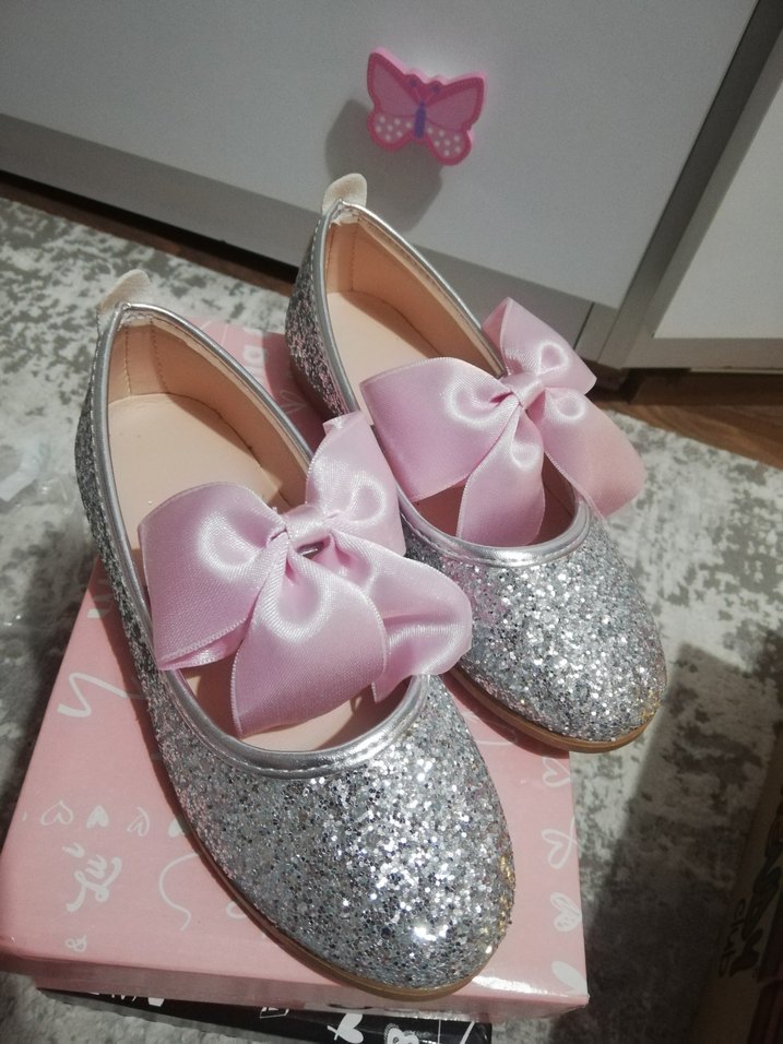 Pembe Fiyonklu Gümüş Parlak Kız Babet