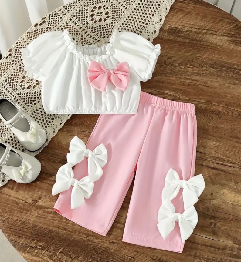 Pembe Fiyonklu Kız Bebek Kısa Kollu Takım