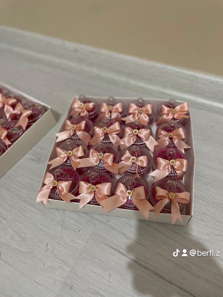Pembe renkli, saten fiyonklu ve küçük çiçek detaylı blush seti, beyaz kutuda sunulmuştur. Kuran hediyeliği uygundur.