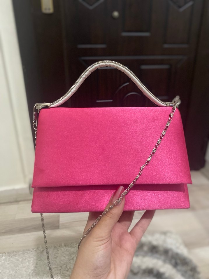 Pembe/Fuşya Zincir Detaylı Kadın Abiye Çanta