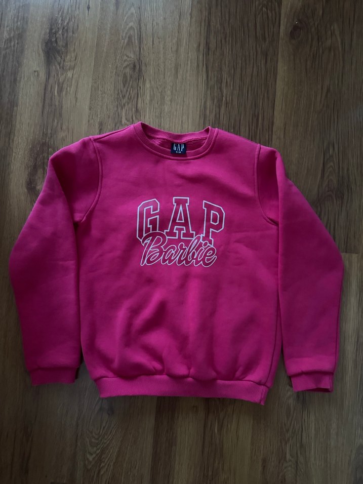 Pembe renkte, yuvarlak yakalı ve uzun kollu bu sweatshirt yumuşak, sıcak kumaştan üretilmiştir. GAP Barbie baskılı, bol kesim ve günlük sokak stiline uygun. içi tüğlü olduğundan sıcak tutar .çok temiz kullanılmıştır.