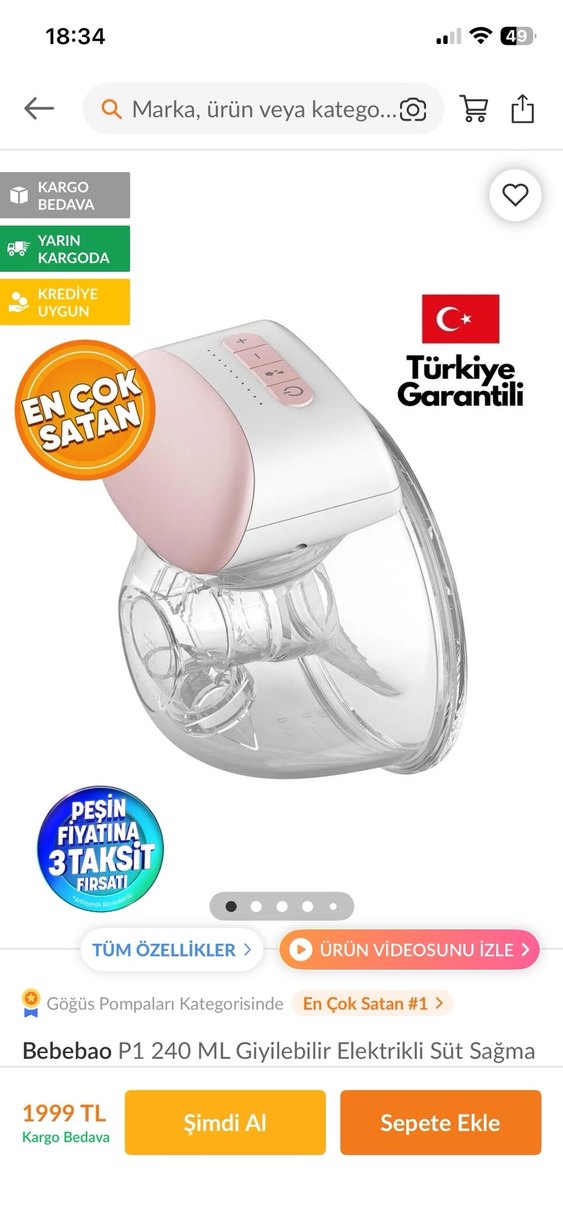 Pastel pembe renkte, ergonomik tasarımlı göğüs pompası. Kolay kullanımlı düğmelere sahip, Türkiye garantili ve taksit seçeneği mevcut. Hızlı kargoya hazır.
