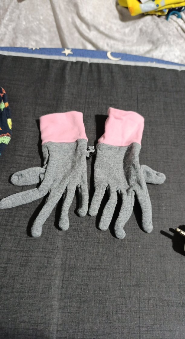 Kadınlar için gri ve pembe renklerde, yumuşak ve sıcak kumaştan yapılmış elastik bilekli eldivenler. Rahat ve şık tasarım sunar. 2-3 yas