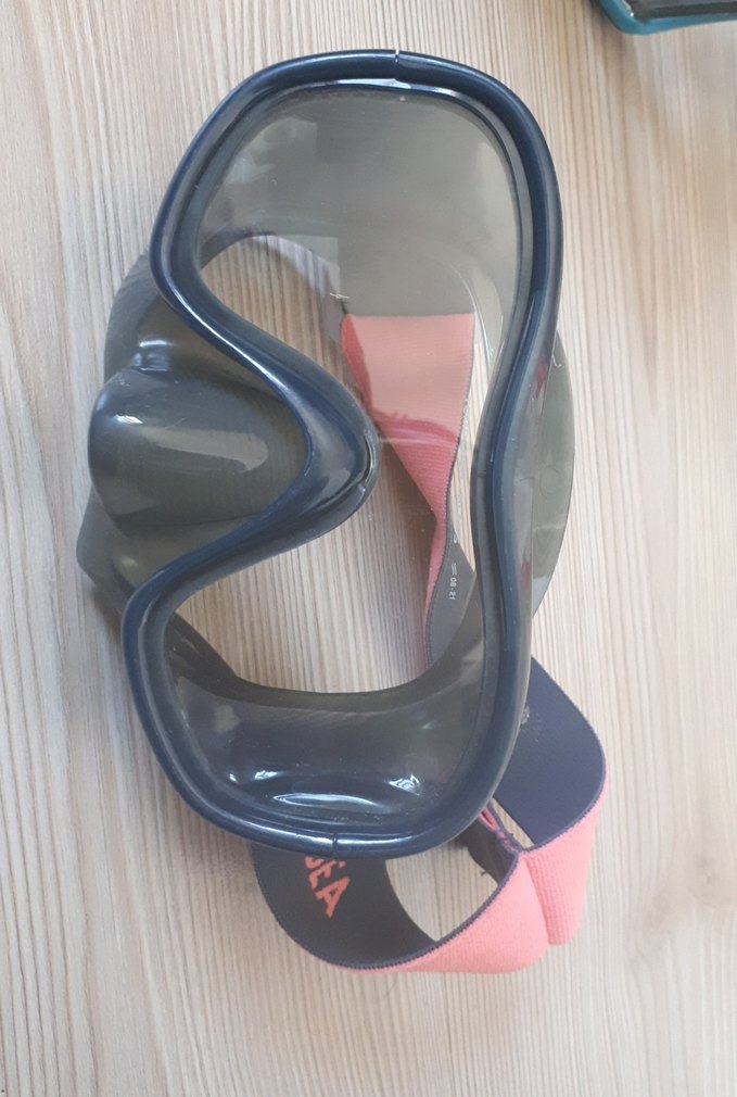 Gri çerçeveli ve pembe elastik bantlı, sportif kullanım için uygun, çağdaş ve avangard tarzda, kısa ve vücuda oturan yüzücü gözlüğü. ♀️