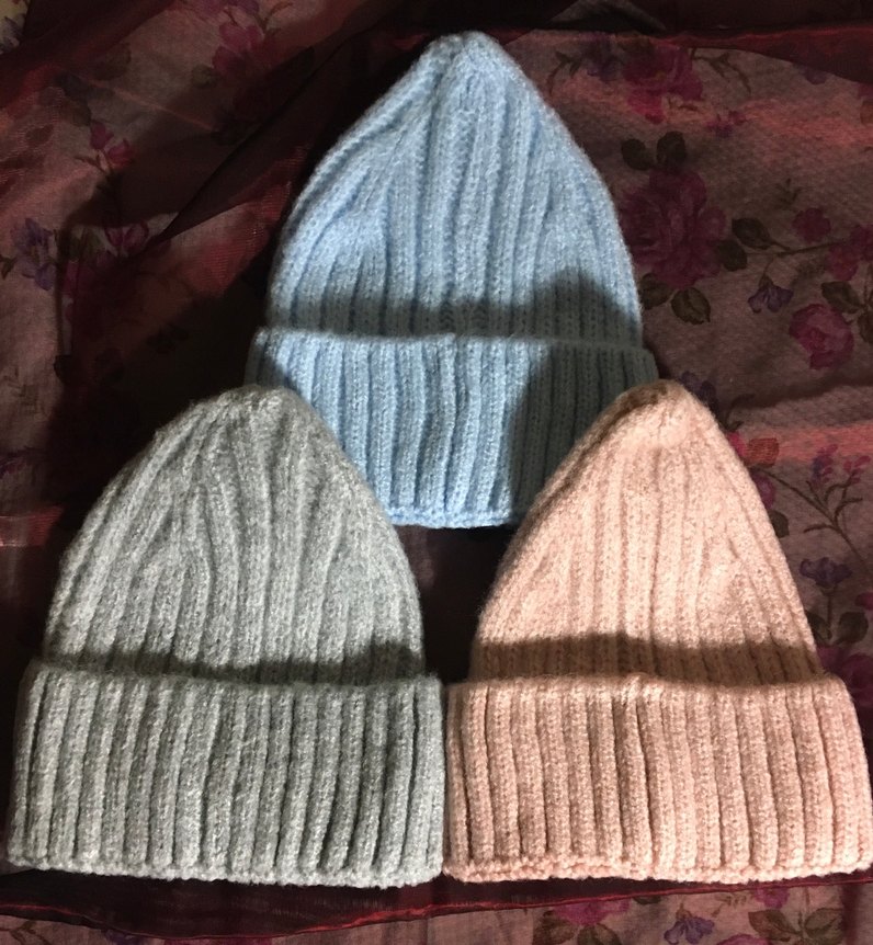 Pembe, gri, mavi unisex bere. Tek satılır.