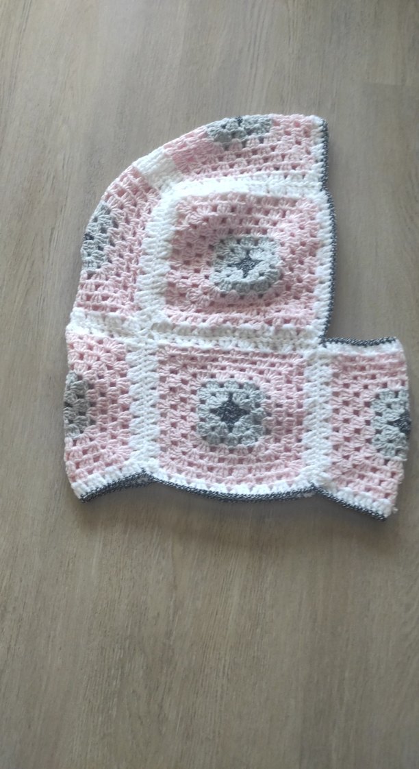 Pembe ve gri renklerde nakışlı desenlere sahip, yumuşak ve sıcak balaklava İade yok