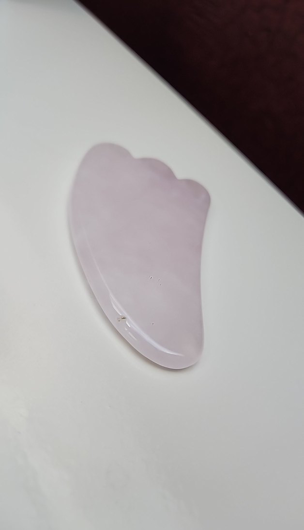 Diger markasına ait pembe gua sha taşı, cilt bakımı için yumuşak pastel renkte olup yüz masajı ve kan dolaşımını destekler.