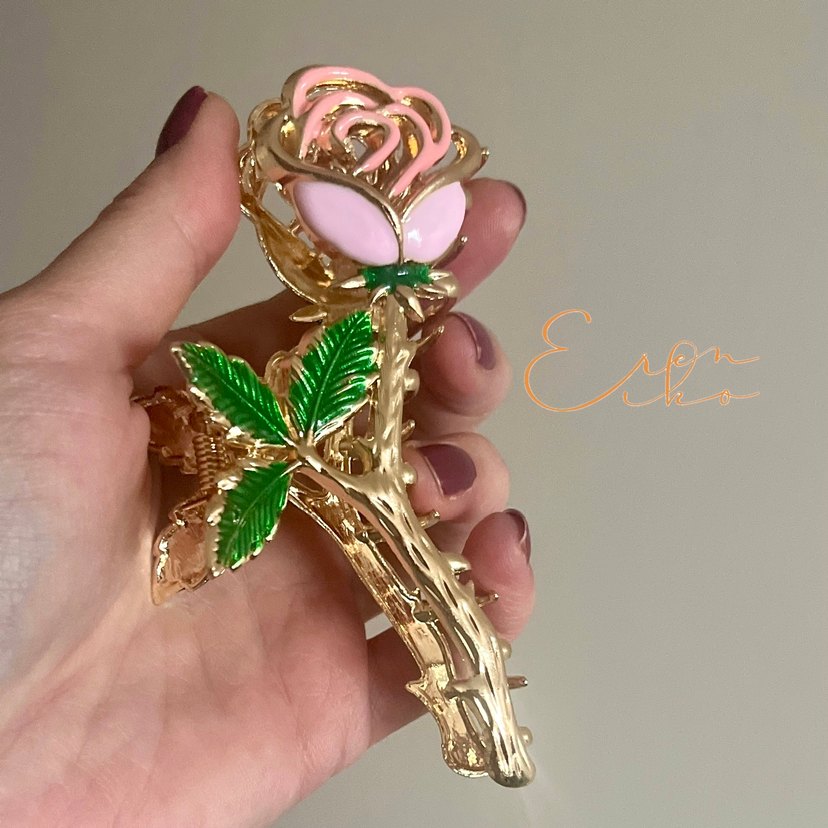 Pembe güllü metal büyük mandal toka✨11cm büyüklüğünde