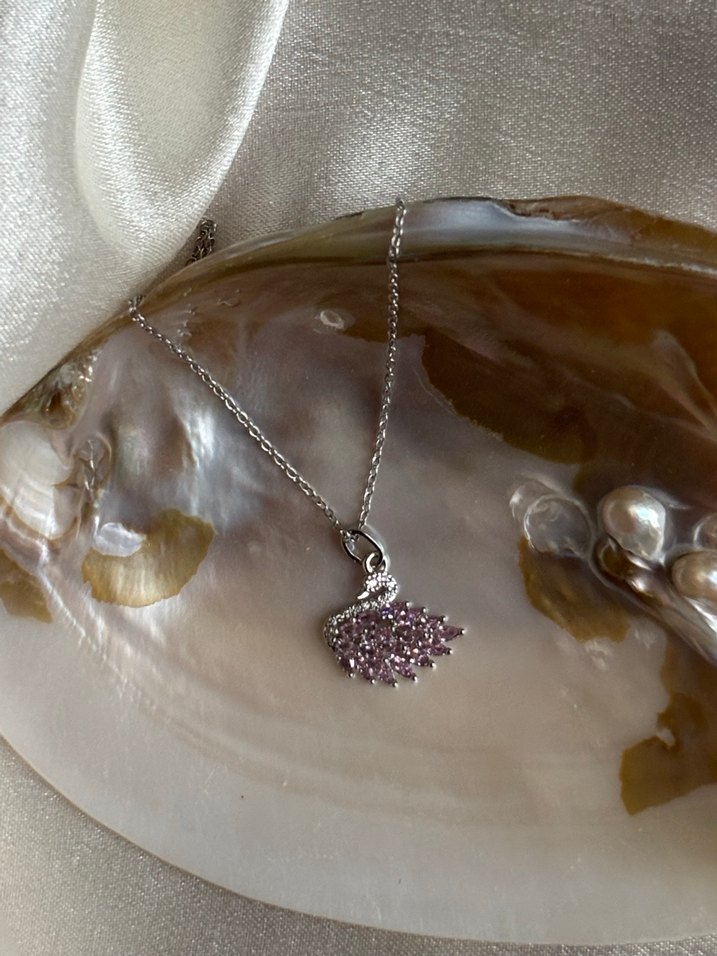 Pembe Gümüş Kuğu Çelik Kolye - Swarovski Pinterest