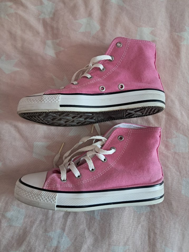 Pastel pembe renkte, düz tabanlı ve bağcıklı spor ayakkabısı. Günlük kullanım için rahat ve şık.