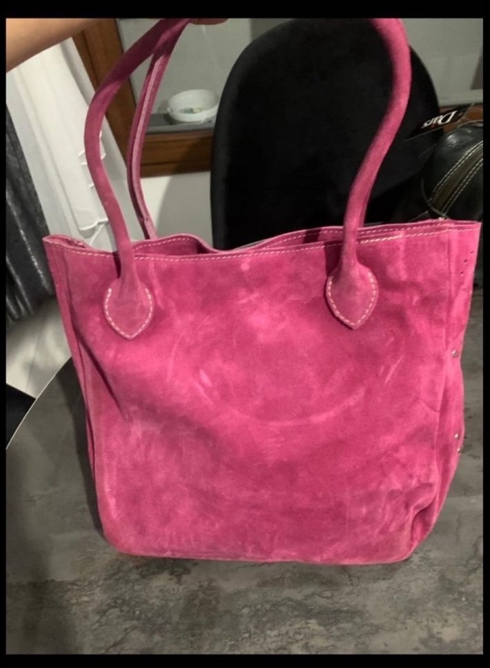 Pembe hakiki süet deri Kadın Günlük Çanta