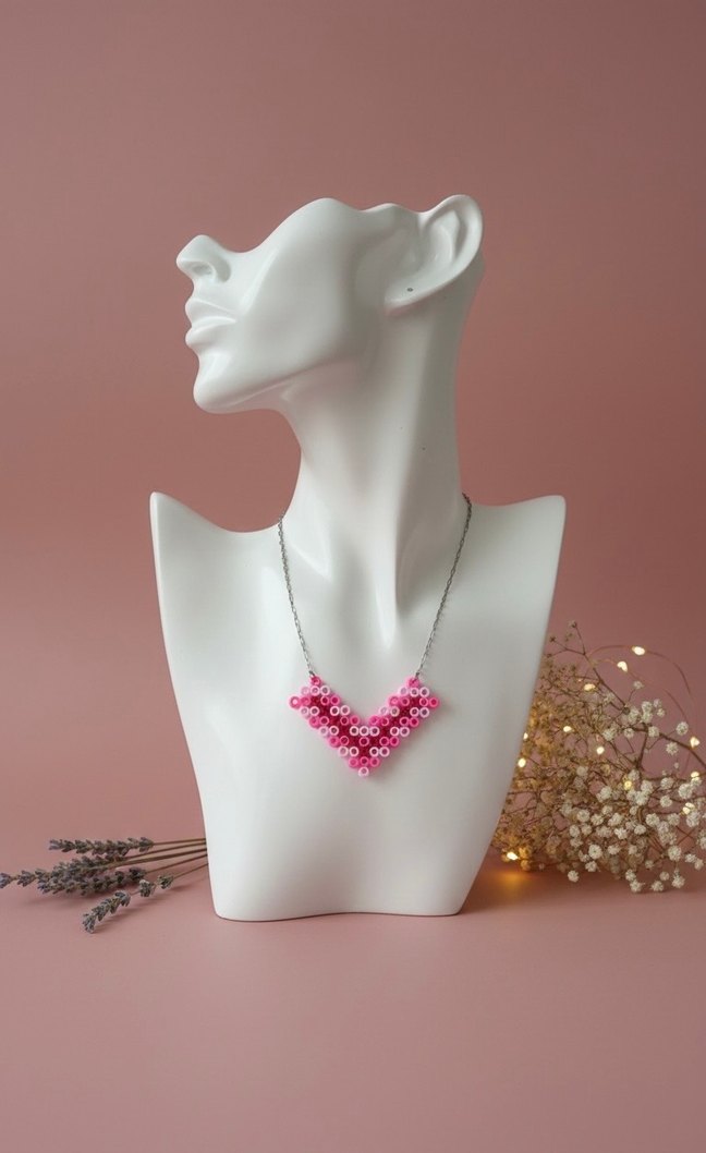 Pembe Hama Boncuklu Mini Bohem Kolye
