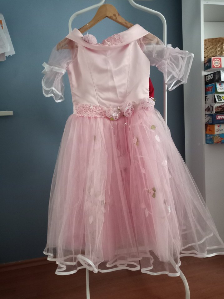 Kızım sadece 1 gece giymişti o tarihte 8 yaş civarındaydı ama çocuklarda gelişim farklı olduğu için lütfen ölçülere bakın. Özel olarak diktirildi ama dolapta duruyordu. Ölçüleri fotoğrafta mevcut. Dolapta beklediği için eteğinin kabarıklı biraz gitmiş maalesef. Bel:34 Koltuk altından bel e kadar: 18 Etek boyu 60 cm. Arka kurdelası kayıp bulamadım. Hiç bir leke, sökük yoktur.