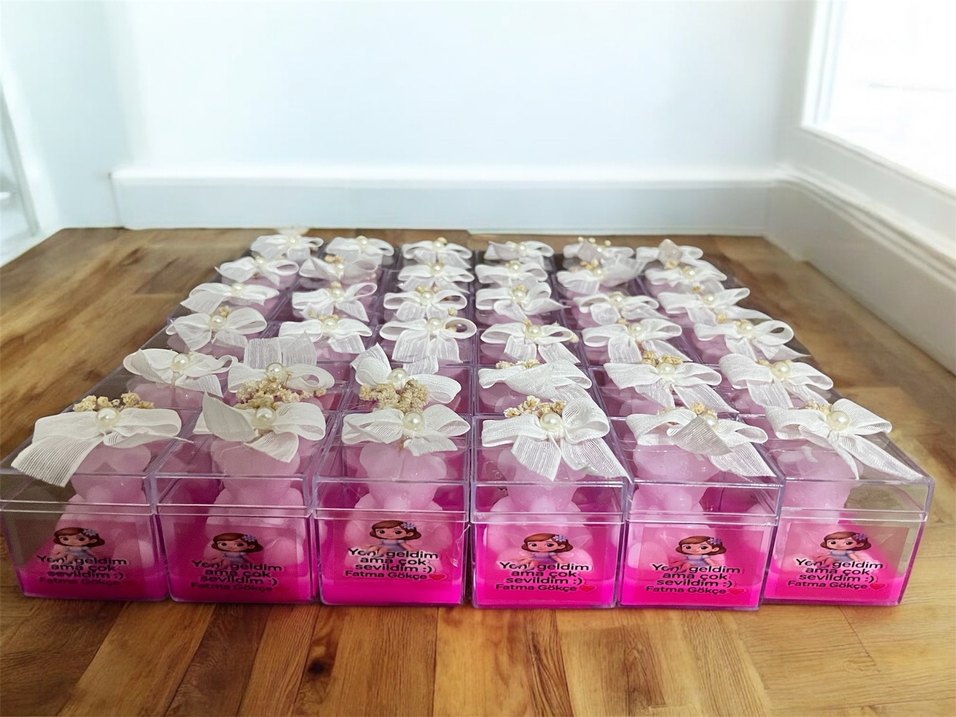 Bebek doğum,mevlit, sünnet, kına,düğün gibi özel günlerde dağıtmalık hediye. İstenilen renkler yapılır içerik de değiştirilir. Fiyat adet fiyatıdır
