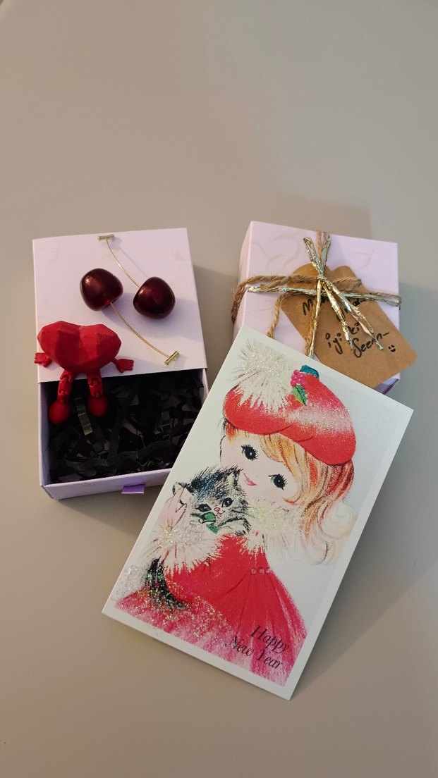Kiraz küpe Kalp obje ve nostaljik kartpostal hediyesi ile birlikteee ve tabiki şık paketli kutusu ile... Yeni yıl hediyesi, doğum günü hediyesi veya içimden geldi hediyesi... Ya daa kendinize bir hediye