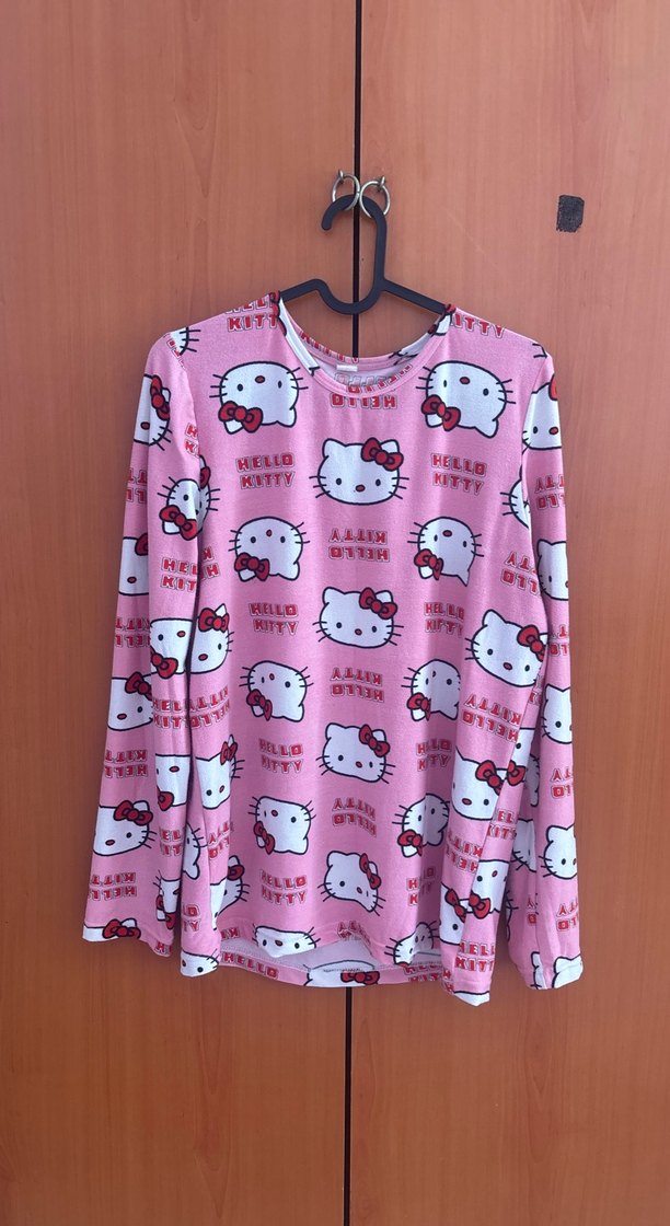 Pembe, pastel Hello Kitty baskılı, sentetik kumaştan, elastik ve dar kesim kız taytı. Rahat ve şık sokak stili için uygundur.