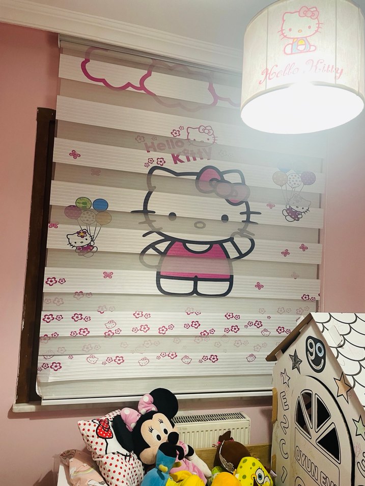 Pembe Hello Kitty Baskılı Stor Perde+ avize