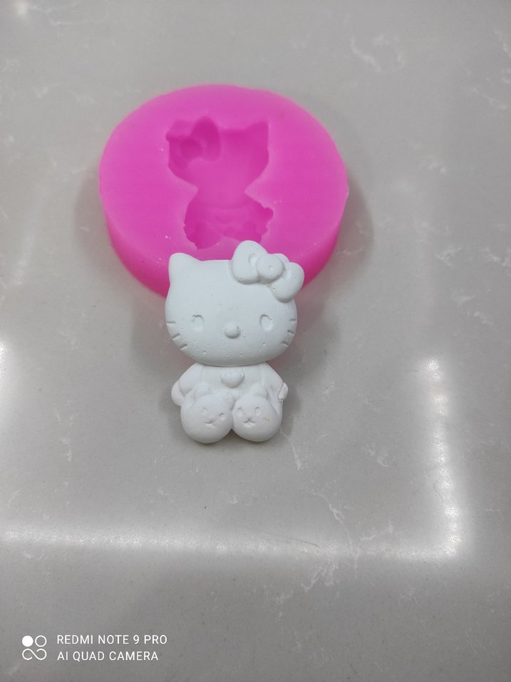 Pembe renkli, Hello Kitty figür tasarımı içeren yumuşak kalıp. Renkli figürler yapmak için uygundur.