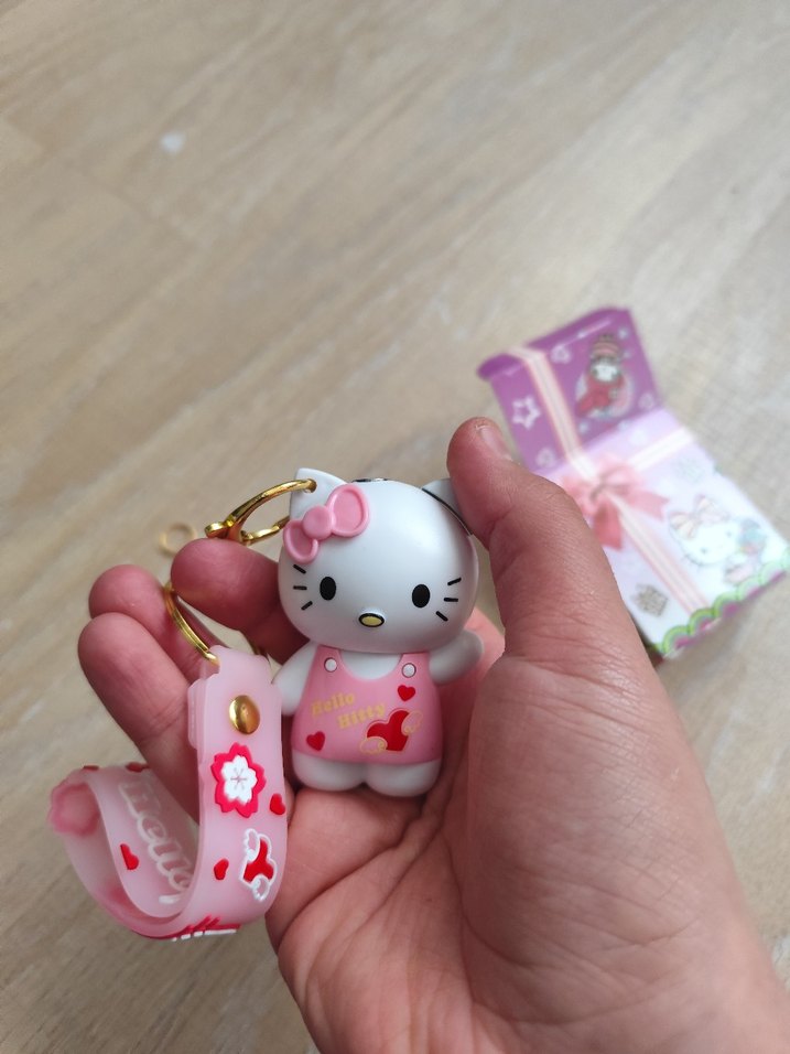 Pembe pastel renkte, kurdeleli Hello Kitty figürlü anahtarlık. Rahat ve bohem tarzları yansıtan, retro ve hippie havası taşıyor.