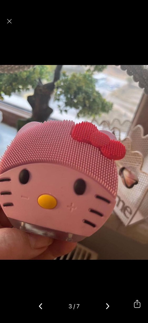 Pembe Hello Kitty tasarımlı yüz temizleme cihazı, yumuşak silikon kıllarıyla nazikçe cildi temizler ve canlandırır. Işıklı