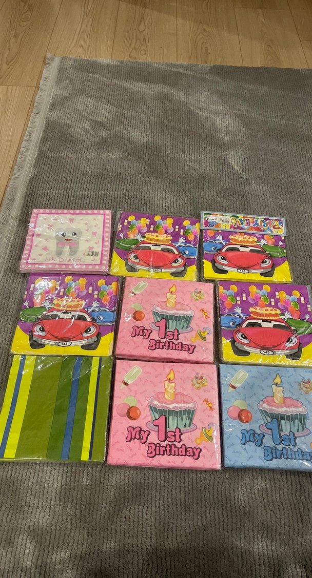 Gülümseyen diş ve "ilk Dişim" yazılı pembe peçeteler, bebeklerin ilk dişi kutlaması için uygun bir paket fiyatıdır.