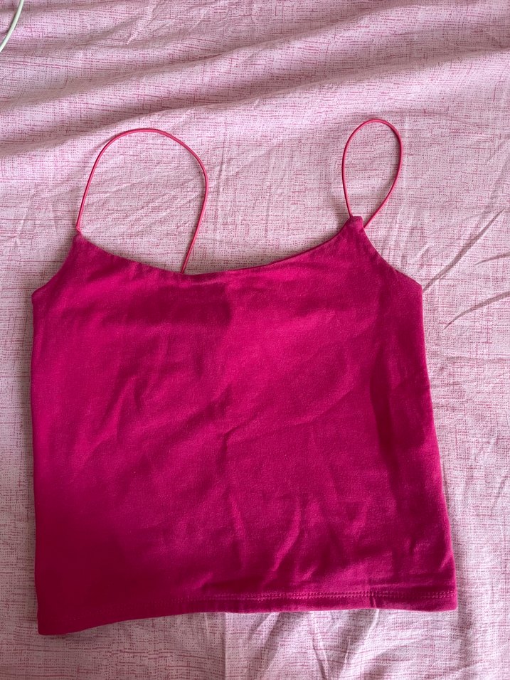 Pembe renkte, ince askılı, tek renk kadın atlet. Sentetik kumaştan, sade ve günlük kullanıma uygun, normal boyda ve dar kesim.