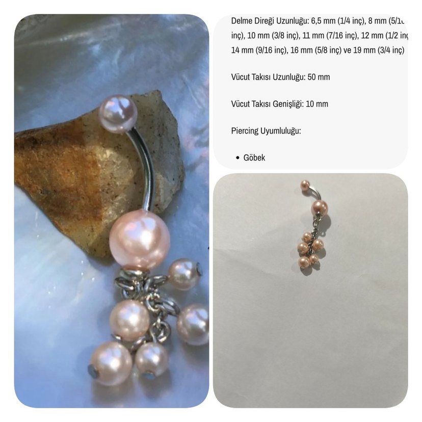 Pembe, boncuklu inci detaylı göbek piercingi. 6,5 mm ila 16 mm delme direği uzunluğu ve 50 mm vücut takısı uzunluğuna uygundur. ürün orijinal yurtdışından alınmış ve hiç kullanılmamıştır paketli üründür lütfen diğer ürünlerime de bakınız her ürüne teklif verebilirsiniz sorularınızı cevaplıyorum