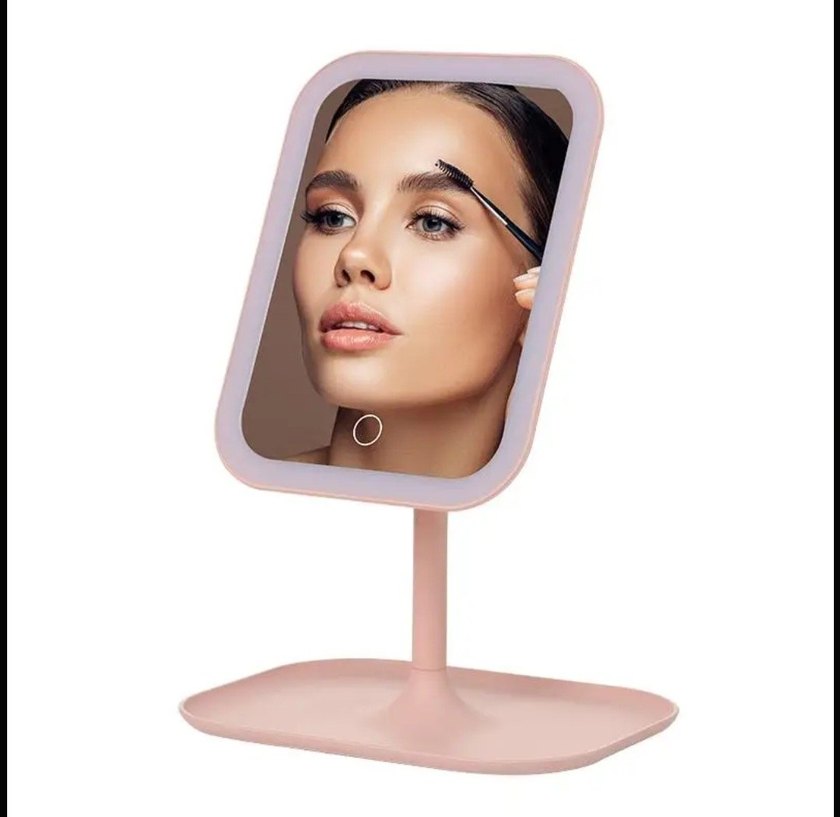 Pembe Işıklı Masaüstü Makyaj Aynası