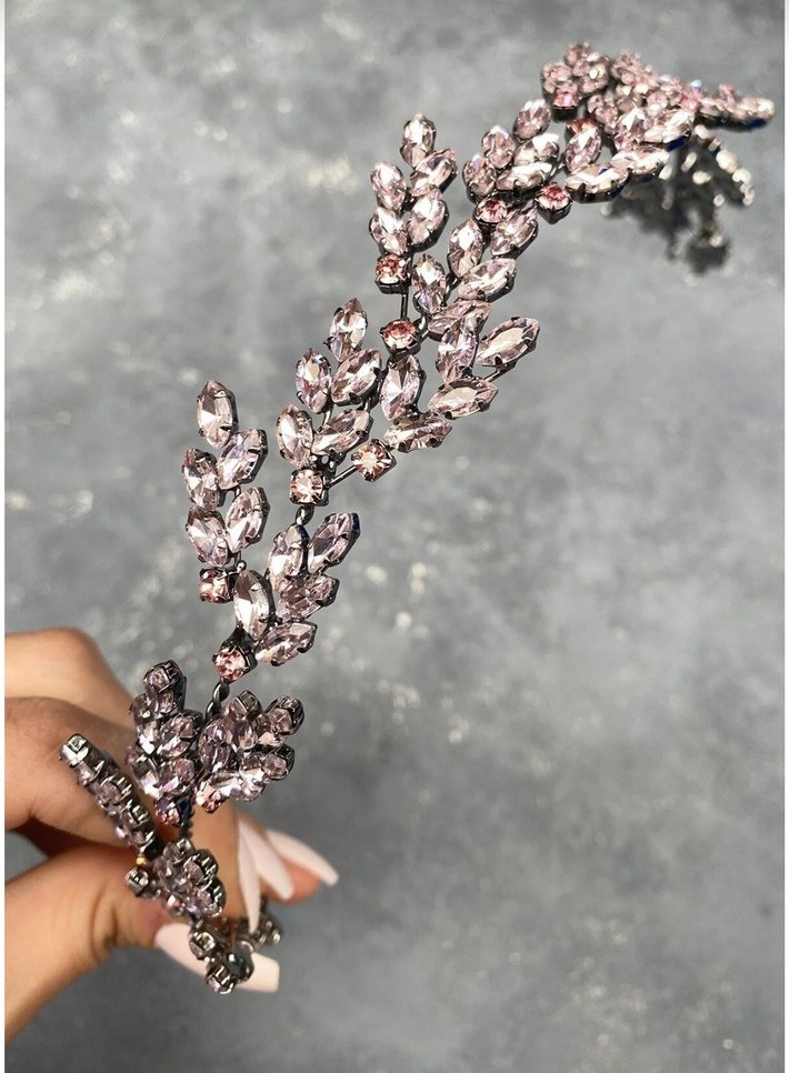Pembe ışıkta cam taşlarla süslenmiş, ışıltılı ve bohem tarzda kadın saç aksesuarı. ✨