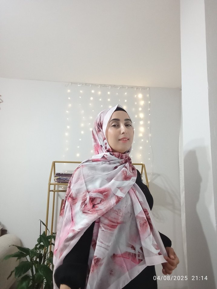 Pembe renkte, ipek görünümlü, drapeli kadın şalı. Sade ve bohem tarzı yansıtan yumuşak dokulu bir tasarım.