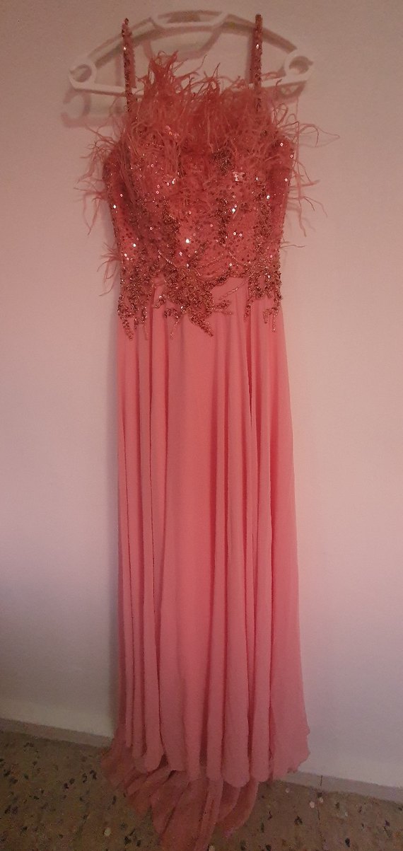 Askılı, işlemeli ve drapeli detaylara sahip uzun, bol kesim pembe abiye elbise. Parlak kumaşıyla düğünler için şık bir seçenek. işleme ve otrişleri el işçiliğidir tarlatanlı ya da tarlatansız kullanılabilir yanında 1000tl değerinde tarlatan hediye olarak verilecektir.36 38 hatta 40 bedene uyumlu sırt kısmında genişletilebilir detayı mevcuttur 1 kez giyildi