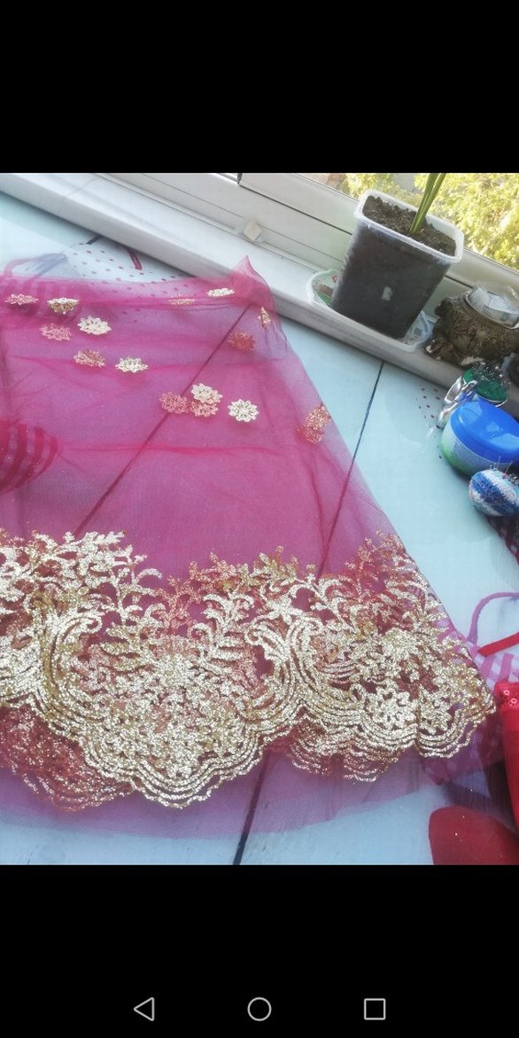 Pembe renkli, işlemeli ve dantel detaylı ve ışıltılı tarzda düğünler için uygun.kına çemberi
