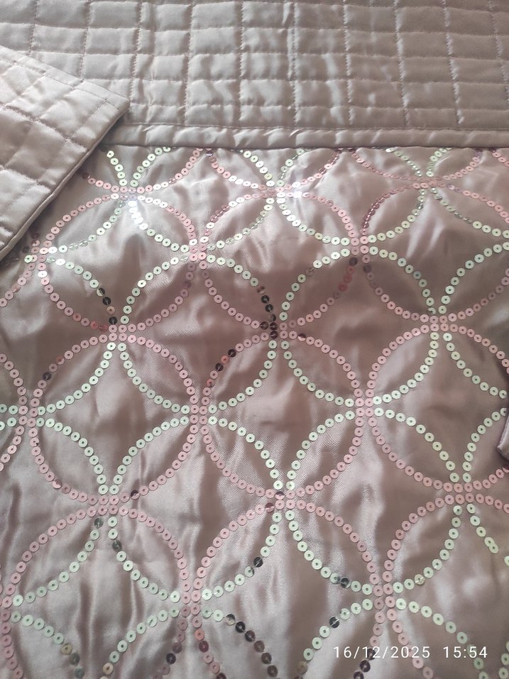 Parlak pembe yatak örtüsü, işlemeli dairesel desenlere sahiptir ve yatak odanıza şık bir dokunuş katar. Kumaşı pürüzsüz ve parlak yüzeylidir. ️