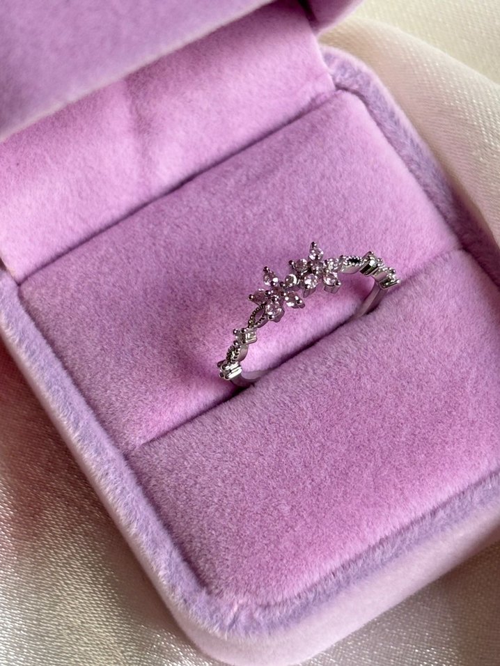 Pembe İşlemeli Taşlı Çiçek Pinterest Çelik Gümüş Yüzük
