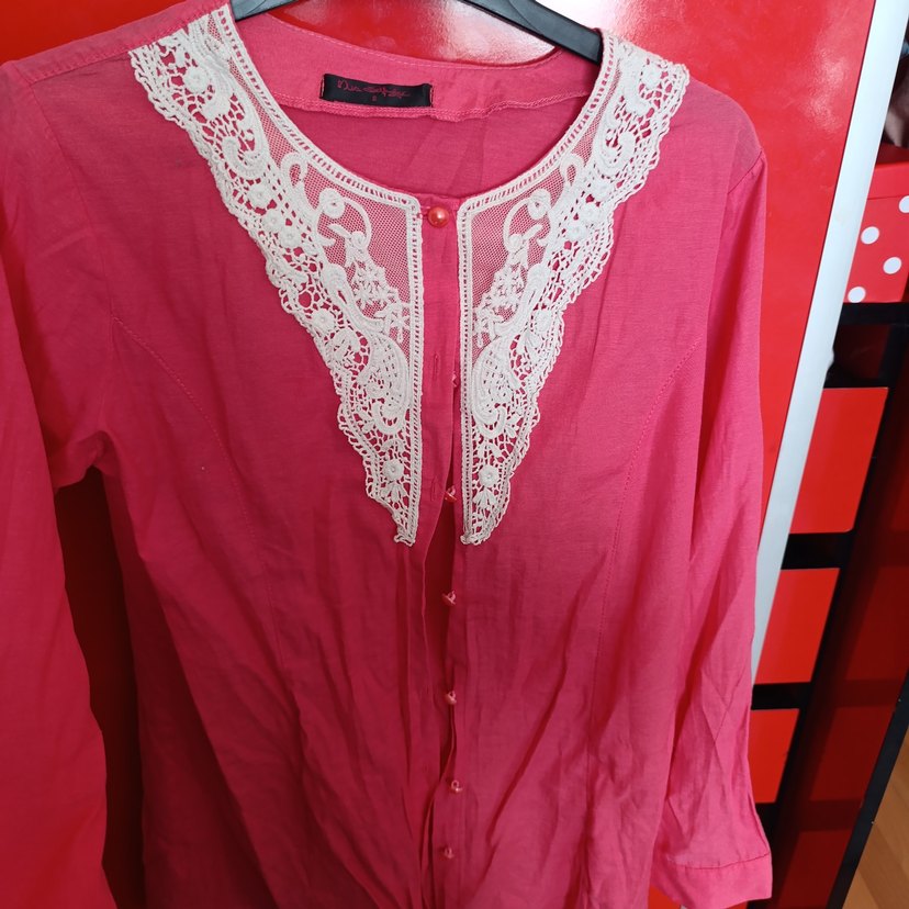 pembe düğmeli işlemeli uzun gömlek