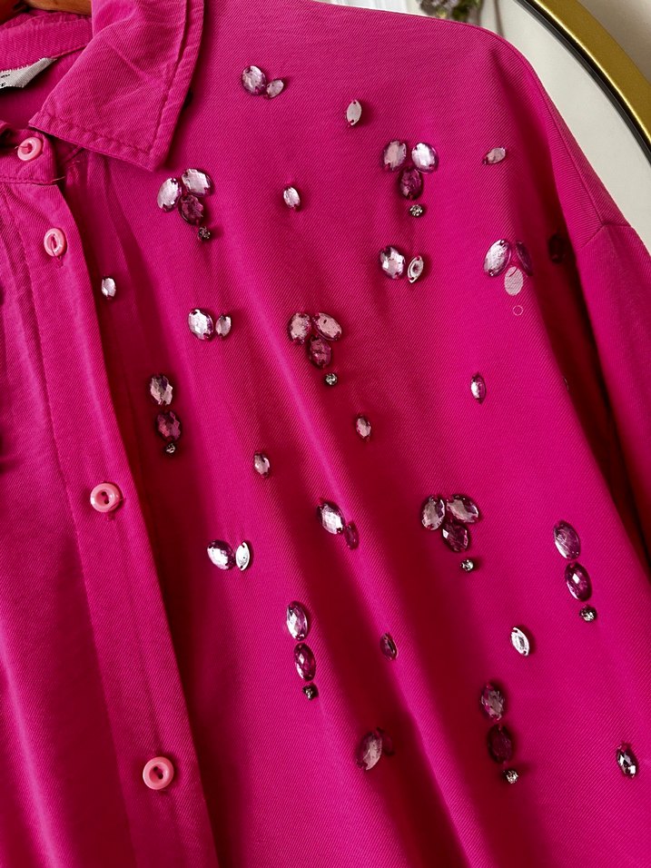 Pembe İşlemeli Uzun Kollu Kadın Gömlek