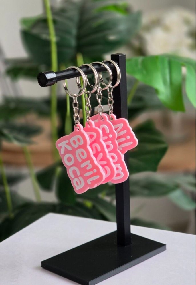Pembe renkli, zincir detaylı kadın anahtarlık, renkli yazılar ve minimalist rock punk tarzını yansıtıyor. 3D PLA malzeme ile üretilmektedir ✨️